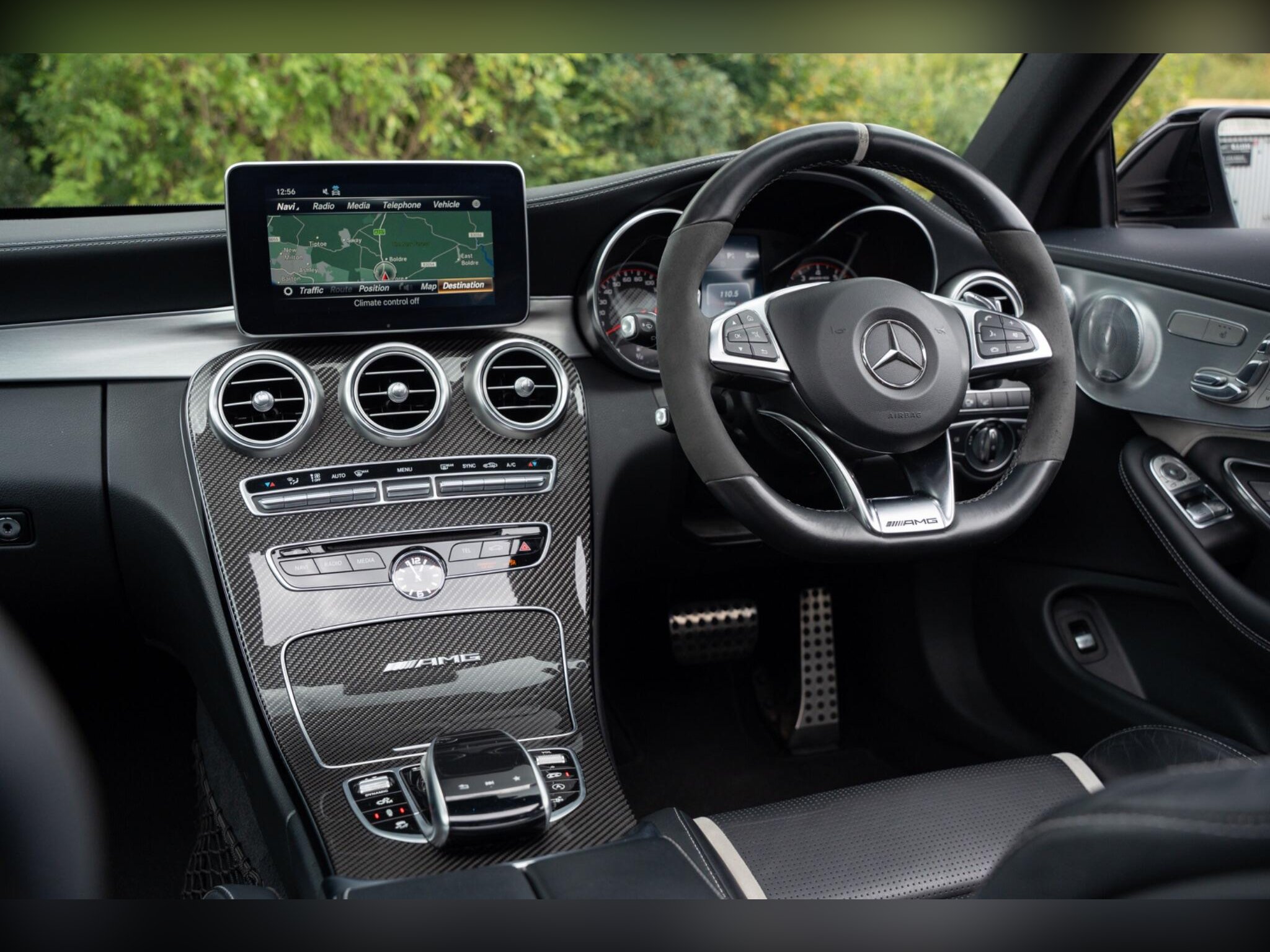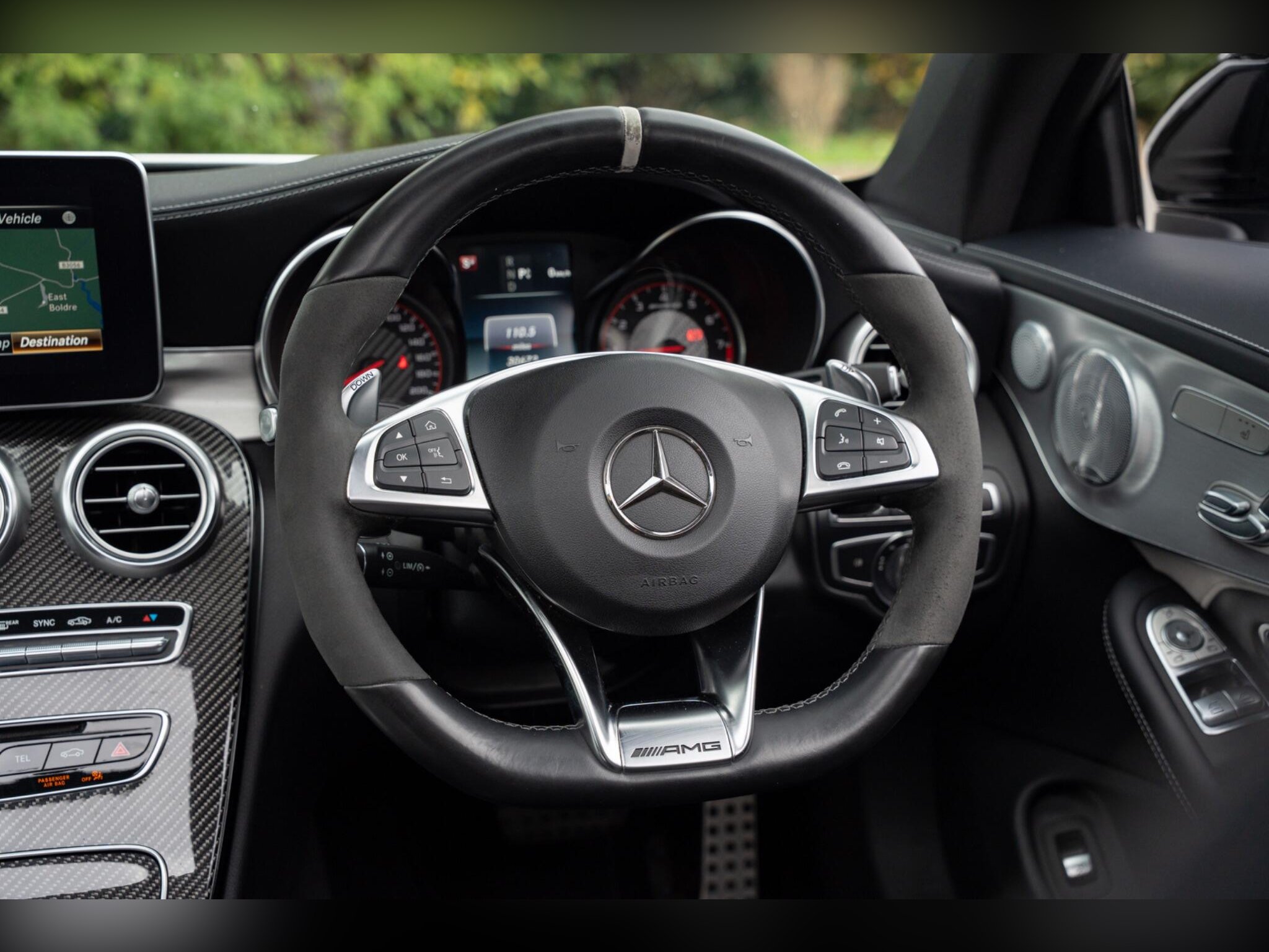- Steering wheel - 3-Spoke Multi-Function AMG Performance Steering Wheel in Black Nappa/DINAMICA Microfibre - Controls Audio and Onboard Settings