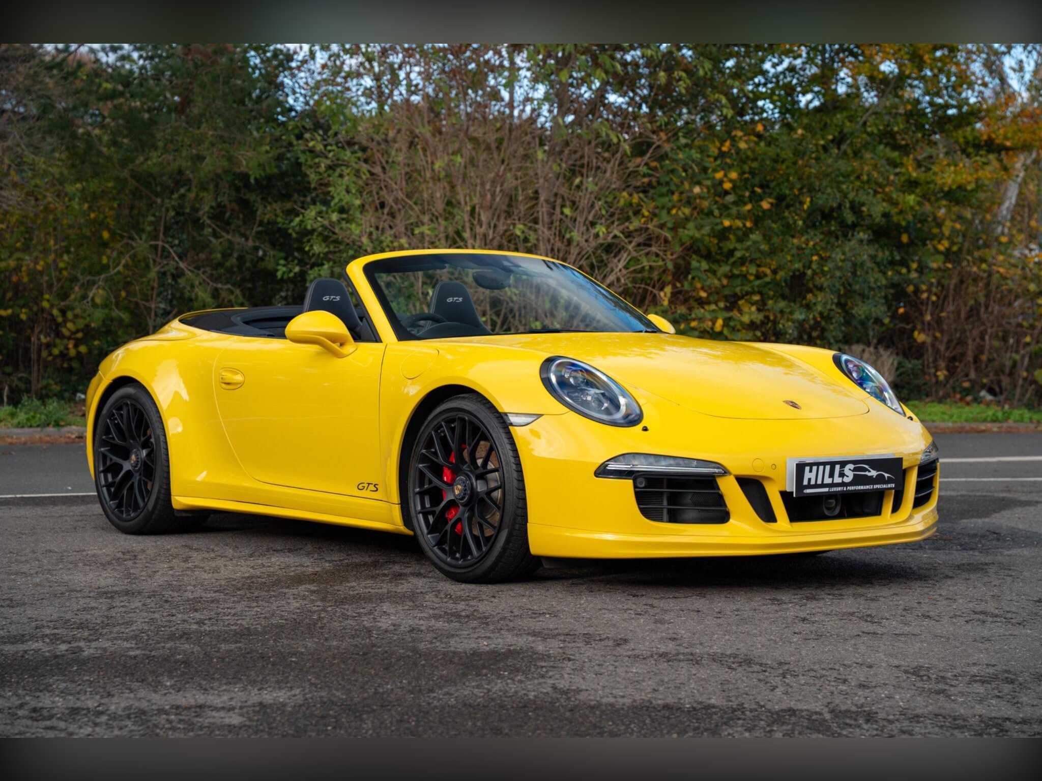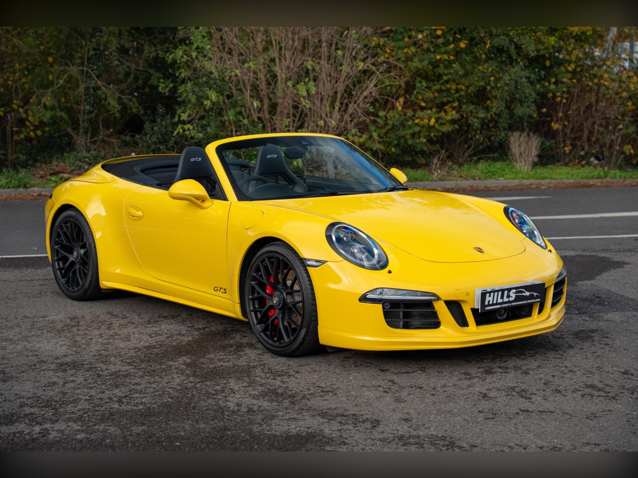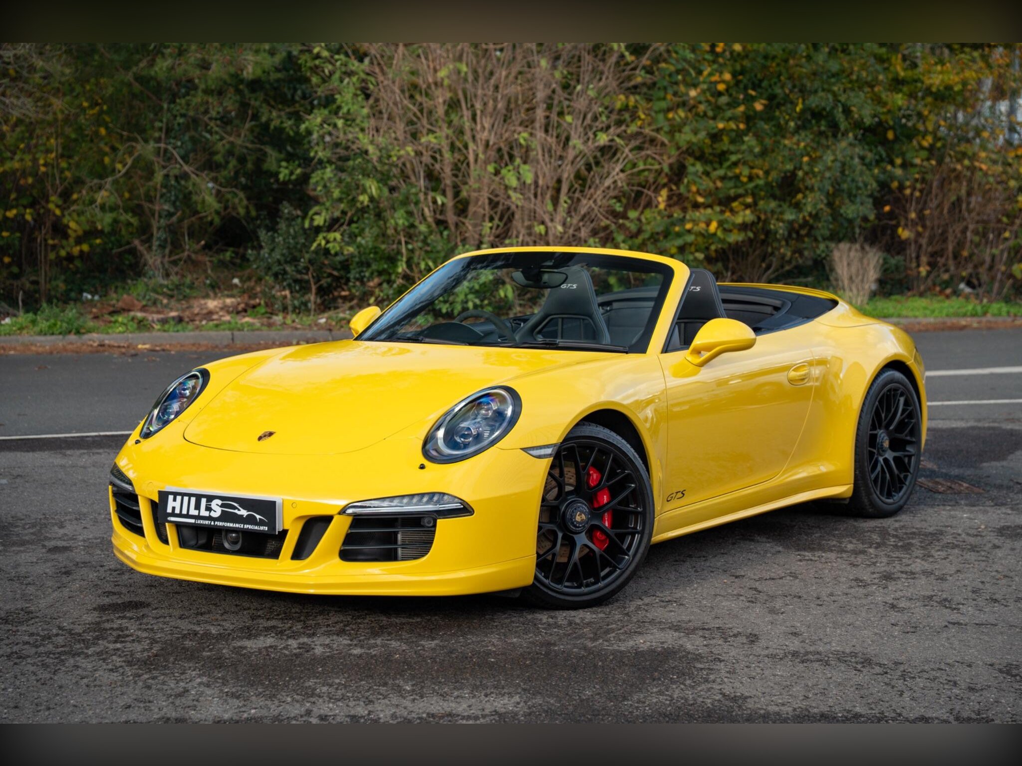 Hills Prestige are proud to offer this exceptional, truly 1 off Porsche 991.1 4 GTS with full Porsche main dealer service history and extended Porsche main dealer warranty, finished in Racing yellow with black carbon bucket seats. The exceptional specification includes:, 023 Instrument Dials in Silver, 088 GTS Interior Package, 250 Porsche Doppelkupplung (PDK), 342 Seat Heating (Front), 352 Porsche Dynamic Chassis Control (PDCC), 456 Adaptive Cruise Control incl. Porsche Active Safe (PAS), 581 Luggage Net in Passenger Footwell, 608 GARAGE DOOR OPENER (HOMELINK) 433 MHZ, 625 Porsche Entry & Drive, 630 Light Design Package, 638 ParkAssist (Front and Rear) with Reversing Camera, 641 Electronic Logbook, 658 Power Steering Plus, 666 Telephone Module, 671 Voice Control, 676 TV TUNER, 2016 911 Carrera 4 GTS Cabriolet, 682 Burmester® High-End Surround Sound System, CEE Rear Footwell Lighting, P02 Sports Bucket Seats , P13 Automatically Dimming Mirrors with Integrated Rain Sensor, UN1 Online Services, XEY LED Headlights in Black incl. Porsche Dynamic Light System Plus (PDLS Plus), XLU Sun Visors in Alcantara, XXD Door-Sill Guards in Carbon Fiber, Illuminated, XXG Clear Glass Taillights, XYB Fuel Cap with Aluminum Look Finish, , This 2015 Porsche 911 991 Carrera 4 GTS is presented with exceptionally low mileage for its age, having covered just 20,500 miles. This four wheel drive, 3.8 litre petrol model meets Euro 6 emissions standards. It features a premium Burmester High End Surround Sound System, offering an exceptional audio experience. The cabin is appointed with supportive Sports Bucket Seats, ensuring comfort and control. For convenience, it includes automatic headlight activation with Bi-Xenon headlights and a two zone automatic climate control system., Upgrades - Burmester High-End Surround Sound System, Seats - Sports Bucket, Standard Features - 20in Alloy Wheels - 911 Turbo S, ABD - Automatic Brake Differential, ABS - Anti-lock Brake System, ASR - Anti Slip Regulation, Airbag - Driver, Airbag - Head, Airbag - Passenger, Airbag - Thorax in Seat Side Bolsters, Alarm