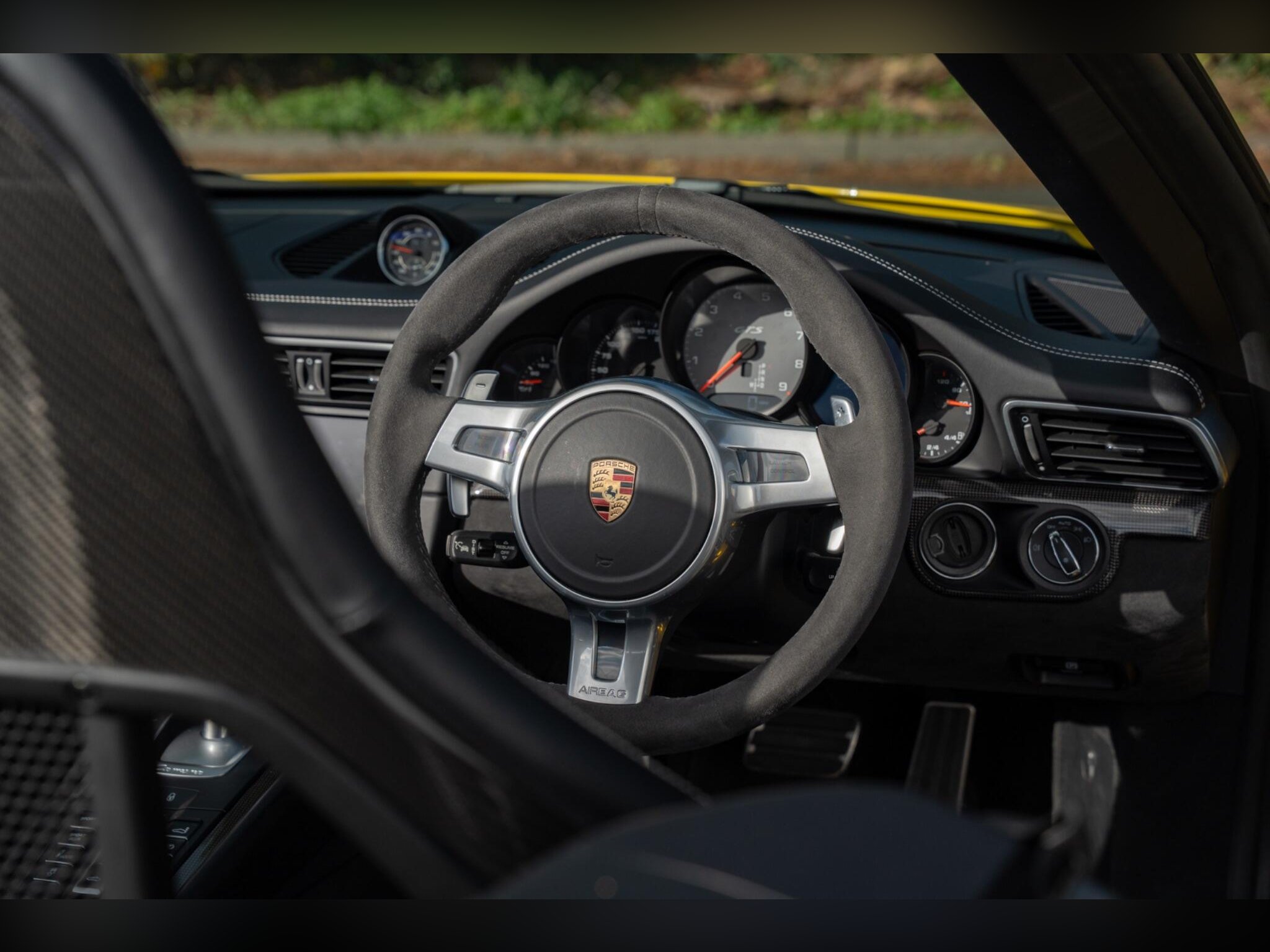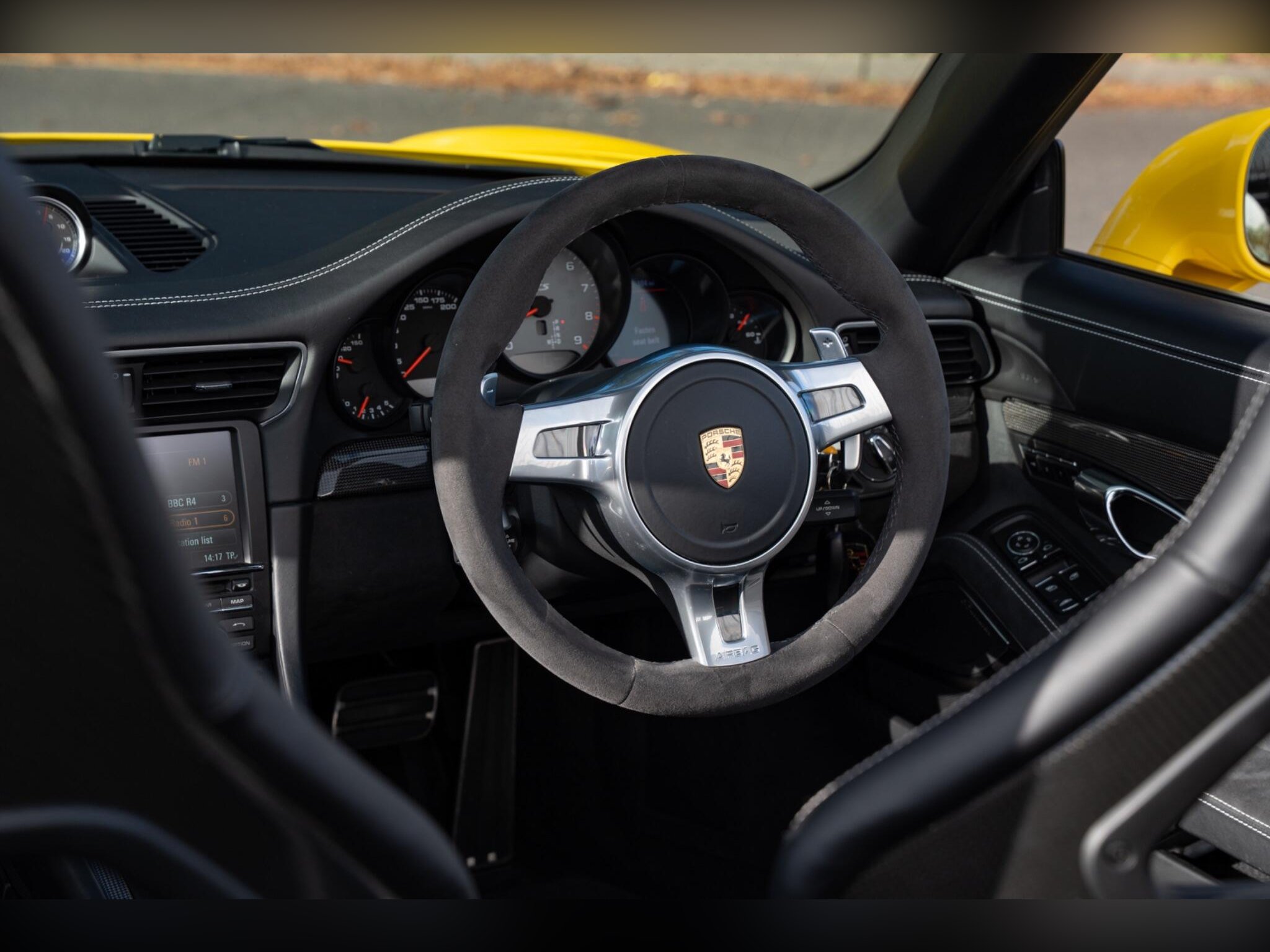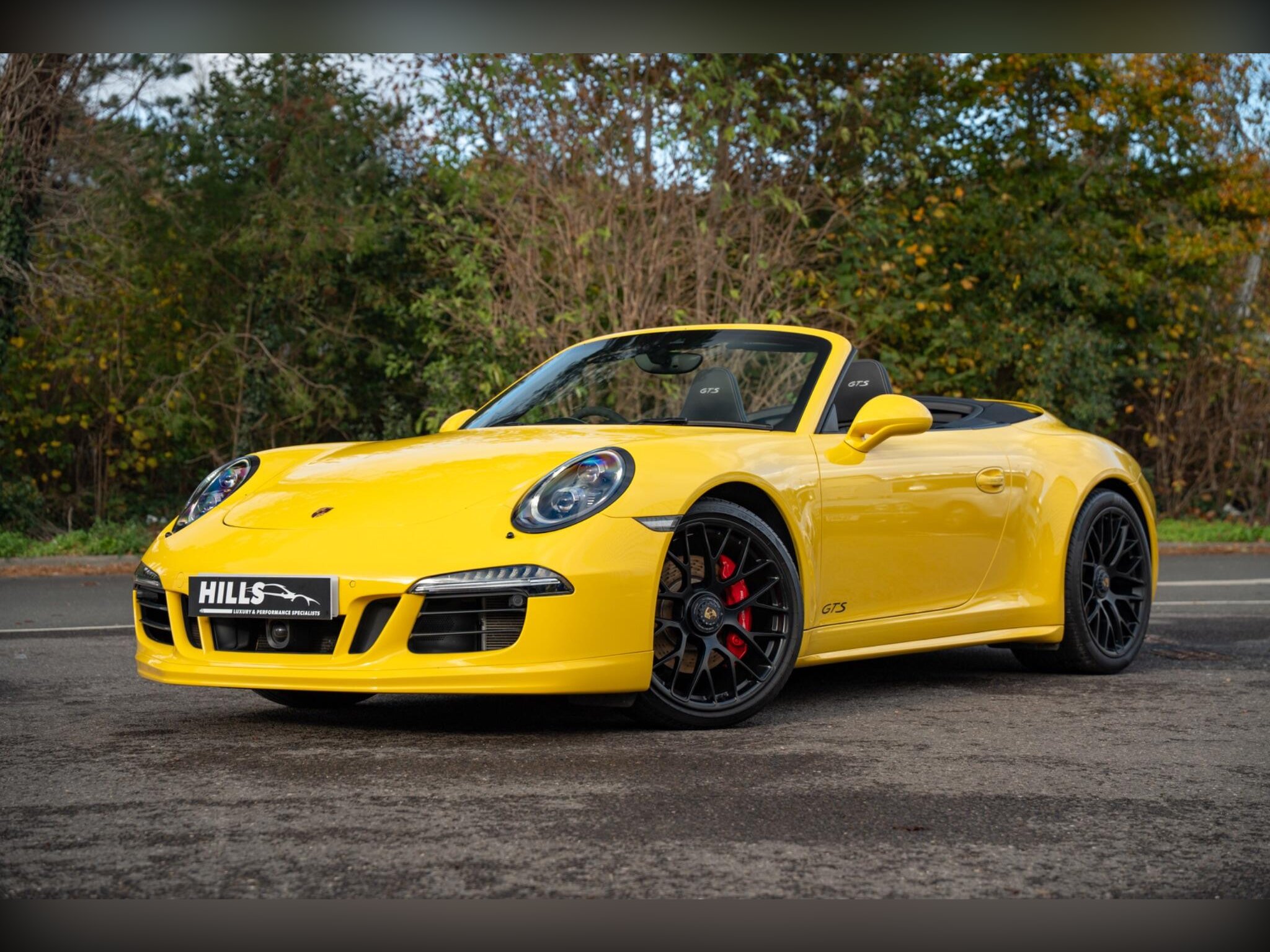 Hills Prestige are proud to offer this exceptional, truly 1 off Porsche 991.1 4 GTS with full Porsche main dealer service history and extended Porsche main dealer warranty, finished in Racing yellow with black carbon bucket seats. The exceptional specification includes:, 023 Instrument Dials in Silver, 088 GTS Interior Package, 250 Porsche Doppelkupplung (PDK), 342 Seat Heating (Front), 352 Porsche Dynamic Chassis Control (PDCC), 456 Adaptive Cruise Control incl. Porsche Active Safe (PAS), 581 Luggage Net in Passenger Footwell, 608 GARAGE DOOR OPENER (HOMELINK) 433 MHZ, 625 Porsche Entry & Drive, 630 Light Design Package, 638 ParkAssist (Front and Rear) with Reversing Camera, 641 Electronic Logbook, 658 Power Steering Plus, 666 Telephone Module, 671 Voice Control, 676 TV TUNER, 2016 911 Carrera 4 GTS Cabriolet, 682 Burmester® High-End Surround Sound System, CEE Rear Footwell Lighting, P02 Sports Bucket Seats , P13 Automatically Dimming Mirrors with Integrated Rain Sensor, UN1 Online Services, XEY LED Headlights in Black incl. Porsche Dynamic Light System Plus (PDLS Plus), XLU Sun Visors in Alcantara, XXD Door-Sill Guards in Carbon Fiber, Illuminated, XXG Clear Glass Taillights, XYB Fuel Cap with Aluminum Look Finish, , This 2015 Porsche 911 991 Carrera 4 GTS is presented with exceptionally low mileage for its age, having covered just 20,500 miles. This four wheel drive, 3.8 litre petrol model meets Euro 6 emissions standards. It features a premium Burmester High End Surround Sound System, offering an exceptional audio experience. The cabin is appointed with supportive Sports Bucket Seats, ensuring comfort and control. For convenience, it includes automatic headlight activation with Bi-Xenon headlights and a two zone automatic climate control system., Upgrades - Burmester High-End Surround Sound System, Seats - Sports Bucket, Standard Features - 20in Alloy Wheels - 911 Turbo S, ABD - Automatic Brake Differential, ABS - Anti-lock Brake System, ASR - Anti Slip Regulation, Airbag - Driver, Airbag - Head, Airbag - Passenger, Airbag - Thorax in Seat Side Bolsters, Alarm