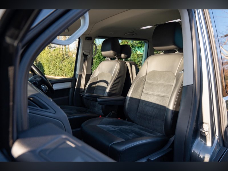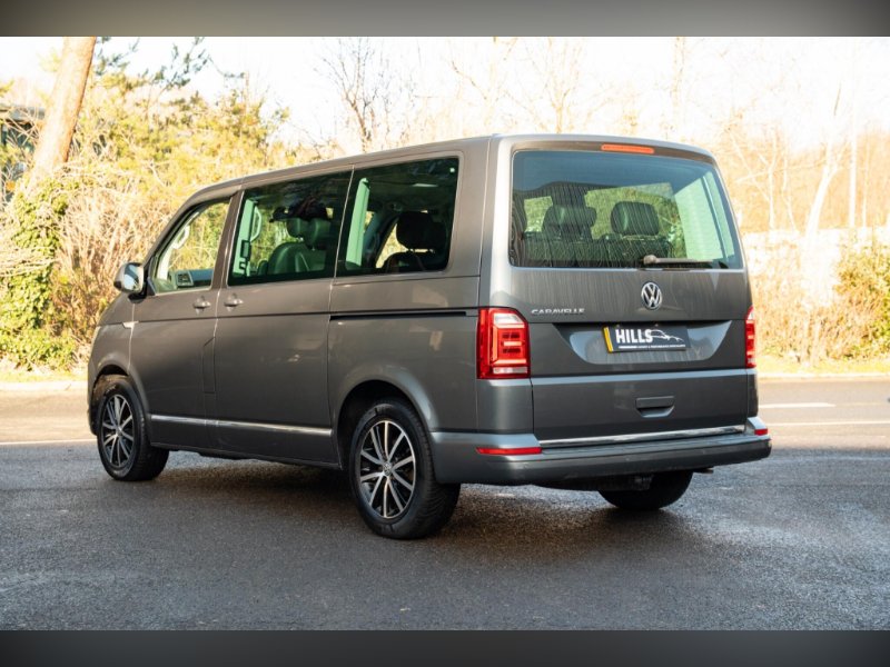 Hills of Lymington Prestige are Proud to Offer This 2019 Volkswagen Caravelle BiTDI Executive is a remarkable example with exceptionally low mileage for its age, having covered just 51,000 miles. This Executive trim model boasts a powerful 2.0 litre Euro 6 diesel engine, offering a smooth and efficient driving experience. With seating for seven, it is perfectly suited for families or business use. Notable features include a premium Bluetooth phone interface with a wireless external aerial for seamless connectivity, Cabin Heater, and a removable and lockable towbar with preparation, allowing for a towing weight of up to 2500 kg. The vehicle also benefits from mounting rails on the roof, prepared for a movable roof rack, and stylish 17 inch Cascavel Anthracite alloy wheels.